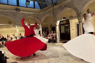 The turning of the dervishes is a moving meditation designed to bring practitioners closer to God
